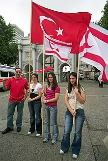 Turkish Cypriot organisations which engage in the Cyprus issue can be divided into two main groups: there are those who support the TRNC government, and those who oppose it. Both groups back up their lobbying by supporting British (and European) politicians.[87] The general impression is that the majority of British Turkish Cypriots are mainly conservative supporters of a Turkish Cypriot state and lobby for its recognition.[89] British Turkish Cypriots cannot vote in Cypriot elections; therefore, Turkish Cypriot organisations have tended to take an active role in political affairs by providing economic support for political parties.[90]