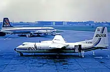 British United Island Airways (BUIA) was formed in November 1968 as part of a reorganisation of the BUA group of companies.[2] It was a regional sister airline of British United Airways (BUA), Britain's largest wholly private, independent[nb 1] airline of the 1960s. It operated a network of regional, short-haul scheduled routes linking a variety of destinations within Europe, including year-round services from both Channel Islands to BUA's Gatwick base.