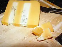 - Dorset Blue Vinney (Protected Geographical Indication)[11] – a traditional blue cheese made near Sturminster Newton in Dorset, England, from skimmed cows' milk. It is a hard, crumbly cheese.