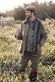 The form of dress although worn throughout Britain is mostly associated with England and is sometimes considered a historical form of dress or national costume, often worn to represent the English gentleman and lady.[1] It is still considered countryside leisure wear and due to the durable, practical, comfortable and fashionable style, some people choose to use elements of country clothing for general usage in Britain.
