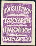 British post offices were established by the military administration in the district under British control, but they never operated. They were in Heraklion and in 9 villages. The postmarks are HPAKΛEION, AΓ. ΘΩMAΣ, AΓ. MYPON, APXANAIΣ, EΠIΣKOΠH, KAΣΤΈΛΛΊ, MOIPAIΣ, MOXOΣ, XAPAKAΣ and XEPΣONHΣOΣ.[1]