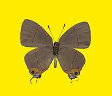 Britomartis igarashii is a butterfly of the family Lycaenidae. Forewing length: 14–15 mm. It is endemic to Borneo and is distributed only in mountainous areas (Mount Kinabalu and Mount Mulu). It is a rare species. Some specimens were taken at night in light traps.