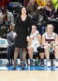 Brittany Lange (born December 31, 1986)[1] is an American college basketball coach who recently served as the head women's basketball coach at Omaha from 2013 until 2020.[2]