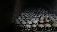 Brno Ossuary is an underground ossuary in Brno, Czech Republic. It was rediscovered in 2001 in the historical centre of the city, partially under the Church of St. James.[1] It is estimated that the ossuary holds the remains of over 50 thousand people which makes it the second-largest ossuary in Europe,[1][2] after the Catacombs of Paris. The ossuary was founded in the 17th century, and was expanded in the 18th century.[3] It's been opened to public since June 2012.[2]