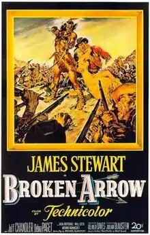 Broken Arrow is a 1950 American Western film directed by Delmer Daves and starring James Stewart, Jeff Chandler and Debra Paget. The film is based on historical figures, but fictionalizes their story in dramatized form. It was nominated for three Academy Awards, and won a Golden Globe Award for Best Film Promoting International Understanding. Film historians have said that the film was one of the first major Westerns since the Second World War to portray the Indians sympathetically.[2]