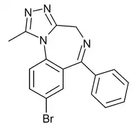 Bromazolam (XLI-268) is a triazolobenzodiazepine (TBZD) which was first synthesised in 1976, but was never marketed.[1] It has subsequently been sold as a designer drug, first being definitively identified by the EMCDDA in Sweden in 2016.[2] It is the bromo instead of chloro analogue of alprazolam and has similar sedative and anxiolytic effects to it and other benzodiazepines.[3][4] Bromazolam is a non subtype selective agonist at the benzodiazepine site of GABAA receptors, with a binding affinity of 2.81nM at the α1 subtype, 0.69nM at α2 and 0.62nM at α5.[5]