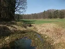 It is a left tributary of the Swabian Rezat near Pleinfeld. It flows through the 3.56-hectare nature reserve of Brombachmoor[2] and through the Großer Brombachsee reservoir.