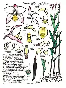 | Drawing of Bromheadia finlaysoniana (as B. palustris) by Sarah Drake | |