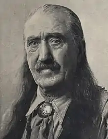 In 1927 he constructed a cabin in Oakdale, New York.[13][14] As the last surviving Pony Express rider he attended a 1935 ceremony in New York to mark the retirement of the last of the United States airmail service's open-cockpit aircraft.[15] Carrie died on 28 March 1936.[2] The next year he gave an interview to the New York Times in which he claimed, at the age of 88, to have never had a hair cut.[16]