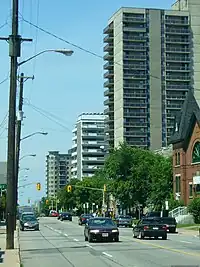 Bronson Avenue (Ottawa Road #79) is a major north-south arterial road in Ottawa, Ontario, Canada. It starts as a continuation of the Airport Parkway, which is an expressway to the Macdonald-Cartier International Airport. It continues past Carleton University, the Glebe, north through Centretown, and ends downtown at Sparks Street.
