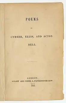 First publication: Poems, by Currer, Ellis, and Acton Bell