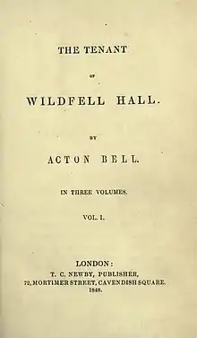 Emily Brontë's Wuthering Heights was published in 1847 under the masculine pseudonym Ellis Bell, by Thomas Cautley Newby, in two companion volumes to that of Anne's (Acton Bell), Agnes Grey. Controversial from the start of its release, its originality, its subject, narrative style and troubled action raised intrigue. Certain critics condemned it,[92] but sales were nevertheless considerable for an unknown author of a novel that defied all conventions.