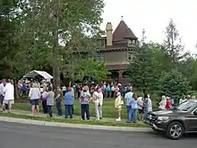 The mansion remained unoccupied for more than a decade, as the housing development was built around it.[69] Carmelo Leggio, owner of a pair of local pizza restaurants, purchased it in 1989 for $450,000.[70] He made significant repairs to the interior and exterior, and added a new roof.[3]: 225 He planned to open a gourmet restaurant on the mansion's first floor, decorated with his collection of Victorian antiques, and to operate a bed and breakfast using the bedrooms of the upper floors.[70] The gourmet restaurant plans fell apart when his efforts to obtain a liquor license were blocked by strong neighborhood opposition.[70] Leggio went ahead with the bed and breakfast, which opened in Spring 1992.[71] In May and June 1993, a local Tae Kwon Do instructor, Dan Glutz, rented a portion of the 4th made and was arrested for having sex with an under-aged teenage girl.[72] The ensuing legal trouble and negative publicity caused Leggio to abandon his plans for the mansion, coupled with the a failed investment where he was scammed out of thousands of dollars.[3]: 225 Vacant, it suffered vandalism and fell into foreclosure.[73]