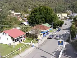 The southern ends of the Pacific Motorway (M1) Brooklyn Bridge and the Pacific Highway Peats Ferry Bridge across the Hawkesbury River are located at Kangaroo Point. It has been termed "the entrance to Sydney" by those commuting from the north.[10] The first Australian five-pound note included a picture of Kangaroo Point.[10] In 2012 the Hornsby Shire Council undertook building work to construct viewing platforms and recreational areas.[10]