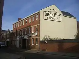 The building is constructed from red brick, partly rendered with ashlars dressing with a slate roof. It is a series of four ranges of two- and three-storey buildings making a square with an inner courtyard. The northern range of buildings fronts onto the River Don and consists of seven blocks of three storey apartments. These are newly built and replace the original single-storey building which was demolished in the 1990s refurbishment. The old cart entrance has been adapted to allow vehicles access to the inner courtyard where there is parking. The restored building has retained some of the original signage from the days of Alfred Beckett & Sons.[3][8]