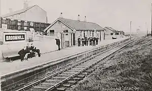 Broomhill railway station served the village of Broomhill in Northumberland, England, a former pit village. The station was on a short branch line of about 5 miles (8 km) which linked the town of Amble with the East Coast Main Line near to Chevington. [2]