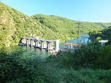 The La Jourdanie (power station) is on the River Tarn upstream of the Pont de Navech.[3] Two Kaplan turbines and two helical turbines generate 18MW. The dam is 145m long and 17m high.