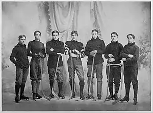 The men's ice hockey team at Brown is one of the country's oldest programs, having played their first game in 1898.[3] That season, the team helped to form the first informal conference, the Intercollegiate Hockey Association, and wound up winning the league championship. While there was no formal declaration at the time, Brown's title is sometimes referred to as the first ice hockey national championship. Brown nearly repeated the feat three years later but ultimately fell to Yale in the first two playoff games ever contested for college ice hockey.[4]