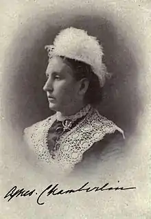 Mrs. Chamberlin was an artist and the author of Canadian Wildflowers (1867) and other works. She drew on the lithographing stone the set of Canadian Fungi (edible) published by the Geological Survey of Canada. She illustrated Mrs. Traill's "Studies of Plant Life".[5] Her drawings were exhibited at the Centennial Exhibition, Philadelphia.[6]