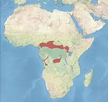 It is found in Angola, Cameroon, Central African Republic, Chad, the Republic of Congo, the Democratic Republic of the Congo, Gabon, Kenya, Nigeria, South Sudan and Uganda. It has an estimated global extent of occurrence of 1,200,000 km2. The IUCN has classified the species as being of least concern.