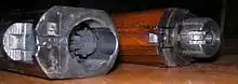 Initial production models had a small loading port located on the top of the stock in contrast to later models which had the loading port located on the right side of the buttstock.