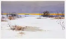 Robert Bruce Crane (1857 – October 29, 1937) was an American painter. He joined the Lyme Art Colony in the early 1900s. His most active period, though, came after 1920, when for more than a decade he did oil sketches of woods, meadows, and hills. He developed into a Tonalist painter under the influence of Jean-Charles Cazin at Grez-sur-Loing. Crane's mature works were nearly always fall and winter scenes. He usually painted in his studio in Bronxville, New York, where like many of the Tonalists he relied mostly on memories of his outdoor sketching experiences. Selected work can be found at the Florence Griswold Museum and the Newark Museum. He is a descendant of the Continental Congressman Stephen Crane.[1]
