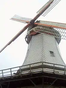 Behlmer Mill: The Behlmer mill is an octagonal two-story structure in the Dutch-style, built in 1876 by the master miller Heusmann. In 1934 it was rebuilt after being severely damaged by a tornado and in 1988, the mill was completely renovated. In addition to the mill are a loom and other farm equipment open to the public.