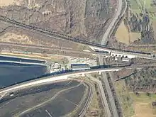 The curve runs above the B 3 and crosses the tracks of the Bruchsal–Odenheim line at grade.[4] It cuts the Bruchsal district landfill in half.