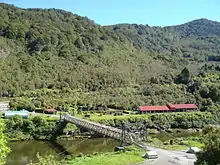 A loop walk with interpretive panels leads from the car park next to State Highway 7 down the valley and over the refurbished Brunner Bridge to the remnants of the Brunner Mine site and a memorial statue. A meticulously restored Q class railway coal wagon[2] is on display near the bridge.