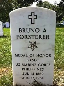 Bruno Albert Forsterer (July 14, 1869 – June 13, 1957) was a U.S. Marine Sergeant who received the Medal of Honor for actions during the Second Samoan Civil War for "distinguished conduct in the presence of the enemy at Samoa, Philippine Islands, April 1, 1899."[1] His Medal of Honor was awarded by President Theodore Roosevelt, by General Order No 55, dated July 19, 1901.[2]