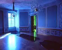 Taking inspiration from the monikers "Green, Blue and Red Salon" and their corresponding tapestries, he installed coloured plastic film in the windows of the halls and created a sequence of coloured light. Notwithstanding the wide range of artistic possibilities offered by three-dimensional space, the formal, aesthetic and conceptual means of his installations clearly relate to his painting practice.