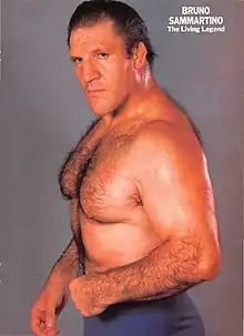 Bruno Leopoldo Francesco Sammartino[1] (October 6, 1935 – April 18, 2018) was an Italian-American professional wrestler. He is best known for his time with the World Wide Wrestling Federation (WWWF, now WWE). There, he held the WWWF World Heavyweight Championship (WWWF Heavyweight Championship during his second reign) for more than 11 years (4,040 days) across two reigns, the first of which is the longest single reign in the promotion's history at 2,803 days. He is overall a two-time world champion in professional wrestling. He is widely regarded as one of the greatest professional wrestlers of all time.