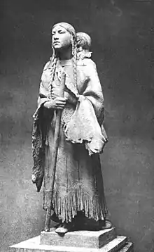 Zimm was commissioned to create a statue of Sacagawea for the 1904 World's Fair. His research into her turned up new evidence: "A sculptor, Mr. Bruno Zimm, seeking a model for a statue of Sacagawea that was later erected at the Louisiana Purchase Exposition in St. Louis, discovered a record of the pilot-woman's death in 1884 (when ninety-five years old) on the Shoshone Reservation, Wyoming, and her wind-swept grave."[5] Zimm also created the colossal Allegorical Figure of North Dakota for the Fair, one of fourteen seated sculptures representing the U.S. states that had been part of the Louisiana Purchase. In addition, he created architectural sculptures for some of the buildings.