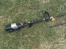 - A rotary cutting head at the opposite end of the pole to the power unit.