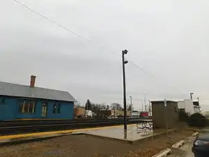![]() The Amtrak platform in Bryan in January 2019. The former New York Central Railroad depot is in the distance. | ||||||||||||||||||