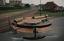 | 1974 | Fish Hill near Broadway, Gloucestershire | Topograph Memorial commissioned by Sir Gordon Russell in memory of his brother Donald Russell[56] | Carved and engraved Welsh grey slate with an engraved stone base | "THIS PICNIC AREA WAS LAID OUT BY THE WORCESTERSHIRE COUNTY COUNCIL IN MEMORY OF DONALD GEORGE SHELFORD RUSSELL OBE 1894 - 1970 OF BROADWAY A MEMBER OF THE COUNCIL 1936 - 1969 ALDERMAN 1952 - 1970 AND CHAIRMAN OF THE PLANNING COMMITTEE 1952 - 1965 * * * AND IN RECOGNITION OF HIS CONSTANT CARE FOR THE AMENITIES OF THE COUNTY * * * IT WAS OPENED BY HUGH M WATSON MTPI MICL MIMunE County Planning Officer 1946 - 1972 ON 30th MARCH 1974" | Bryant Fedden