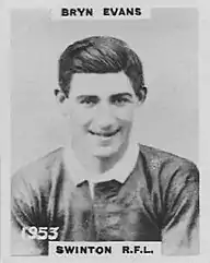Bryn Evans (25 November 1899 – 10 July 1975) was an English professional rugby league footballer who played in the 1920s and 1930s. He played at representative level for Great Britain, England and Lancashire, and at club level for Swinton, as a stand-off, or scrum-half, i.e. numbers 6 or 7.[1]
