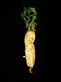 The root can be 75 cm (30 in) long and 75 mm (3.0 in) thick. John Gerard's Herball (1597) states that: "The Queen's chief surgeon, Mr. William Godorous, a very curious and learned gentleman, shewed me a root hereof that waied half an hundredweight, and of the bignes of a child of a yeare old."[2]