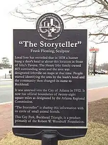 - Charlie Loudermilk Park: In the triangle formed by Peachtree Road, and Roswell Road, is a triangular park known as Charlie Loudermilk Park (renamed from Triangle Park in 2009). Located within the park is The Storyteller, by sculptor Frank Fleming, depicting a man with a buck's head telling a story to various other animals. The descriptive plaque explains:[10]