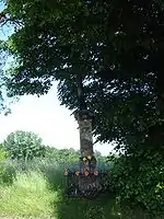 In the cemetery gate is a wooden chapel with an image of St. Stanislaus of Szczepanów. Folk sculptor Stanislaw Zachara in 1884 from the trunk of lime carved figure of St. Stanislaus. In 1900, people just built this chapel, which in later years was several times renewed. In 2008, the chapel has gained a new grid input. Opposite the chapel is the Well of Saint Stanislaus. According to local legend, the well stands in the place where the holy while on his way to Kraków, he felt thirsty. He hit so the ground with his cane, and after a while the water flowed from it. The well for many years was set low on the ground. In 2009, the well raised and fenced.