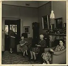 Ernest and Bertha had ten children between 1865 and 1883: four sons: Louis, Alfred, Ernest and Francis, and six daughters: Mary, Ilma, Beatrice (Kate), Gertrude, Bertha (Dorothy) and Hilda. Of their four sons, two died under the age of five years.[24] The Leviny daughters were encouraged to pursue their artistic interests at a time when women were being given more opportunities to study art and take up careers. They worked across a range of media including painting, woodcarving, metalwork, photography, and needlework in which they had their mother's example in the production of clothing by hand.[25]