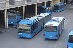 Originally the buses had a dark shade of blue, most of the vehicles have been repainted in the mid-2010s to match the today used lighter blue shade, but occasionally a few spare darker buses can be seen.