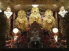 The methods of Pure Land Buddhism are perhaps the most widespread within Vietnam. It is common for practitioners to recite sutras, chants and dhāraṇīs looking to gain protection through bodhisattvas.[54] It is a devotional practice where those practicing put their faith in Amitābha (Vietnamese: A-di-đà). Followers believe they will gain rebirth in his pure land by chanting Amitabha's name. A pure land is a Buddha-realm where one can more easily attain enlightenment since suffering does not exist there.