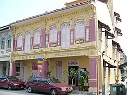 In 1981, Venerable Dhammaratana, a Sri Lankan Theravadin monk, founded the Buddhist Research Society (BRS) in Singapore. One of the aims of the BRS was to set up a Buddhist library. The Library was started in 1982 in a rented unit of Tanjong Katong Complex. Its initial setup was backed financially by the late George Chia Soon Seng, who was a businessman and a devout Buddhist.[1] The Library shifted to Katong Shopping Centre in 1984 and moved again to another rented unit in Hoa Nam Building in 1985. The Library finally bought its own premises at Lorong 29 Geylang in 1991 and it was officially opened on 15 March 1992. Due to the growing needs of its expanding membership and the Buddhist community, the Library relocated to nearby Lorong 24A Geylang in 1998, occupying 2 units of a row of pre-war shophouses that are located within the Geylang Conservation Area, where it stands today.