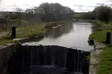 On Monday 10 March 2008, a powerful storm wrenched one of the lock gates off its fixings. Contractors removed the gate the following morning, and four-tonne concrete pipes were placed in the canal basin to dissipate the power of waves coming in from the sea. A temporary dam was constructed at Falcon Bridge, and a team of anglers and staff from the Environment Agency rescued the fish population before it was swept out to sea. Beyond the dam, the loss of water was contained, with levels only dropping by about 8 inches (20 cm),[9] but at the lower end of the canal water continued to flow out until it was practically empty, revealing some interesting finds in the mud, including a shotgun.[10]