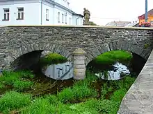 Notable is a Baroque stone bridge with a statue of Saint John of Nepomuk. Next to the bridge is a water mill, which houses the Slate Museum.[3]