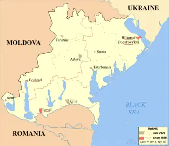 After July 2020, the area is split between Bilhorod-Dnistrovskyi, Bolhrad, and Izmail Raions.