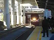 Trains call at a single high-level covered side platform serving one track with a second track for freight trains to pass through the station away from the platform. There is a waiting room on the east side of the building, designated drop-off and pick-up zones, and an area for 14 canopied parking spaces for Greyhound, Trailways and NFTA buses if they are later added.[18]