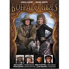 Buffalo Girls is a 1995 American Western television miniseries adapted from the 1990 novel of the same name by Larry McMurtry. Directed by Rod Hardy, it starred Anjelica Huston and Melanie Griffith, with Gabriel Byrne and Peter Coyote. It was nominated for two Golden Globe and several Emmy awards, and won one for sound mixing. This miniseries was first aired on the CBS network over two consecutive nights during the spring of 1995.[1]