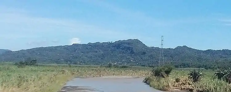 Bulabog Putian is located in the northern Iloilo municipalities of Dingle and San Enrique, some 43 kilometres (27 mi) from Iloilo City. It spans the Dingle barangays of Moroboro, Lincud, Camambugan, Caguyuman, and Tulatulaan, and the San Enrique barangays of Rumagayray, Campo, Palje, and Lip-ac.[2] The park's central feature is the Bulabog Putian mountains, which contain the 1,056-foot (322 m) Putian Peak, the highest in Central Iloilo dominating the surrounding plains.[3] The mountain was named for its most distinguishing feature, a white stone wall on the north side that is visible from as far away as Passi.[3]